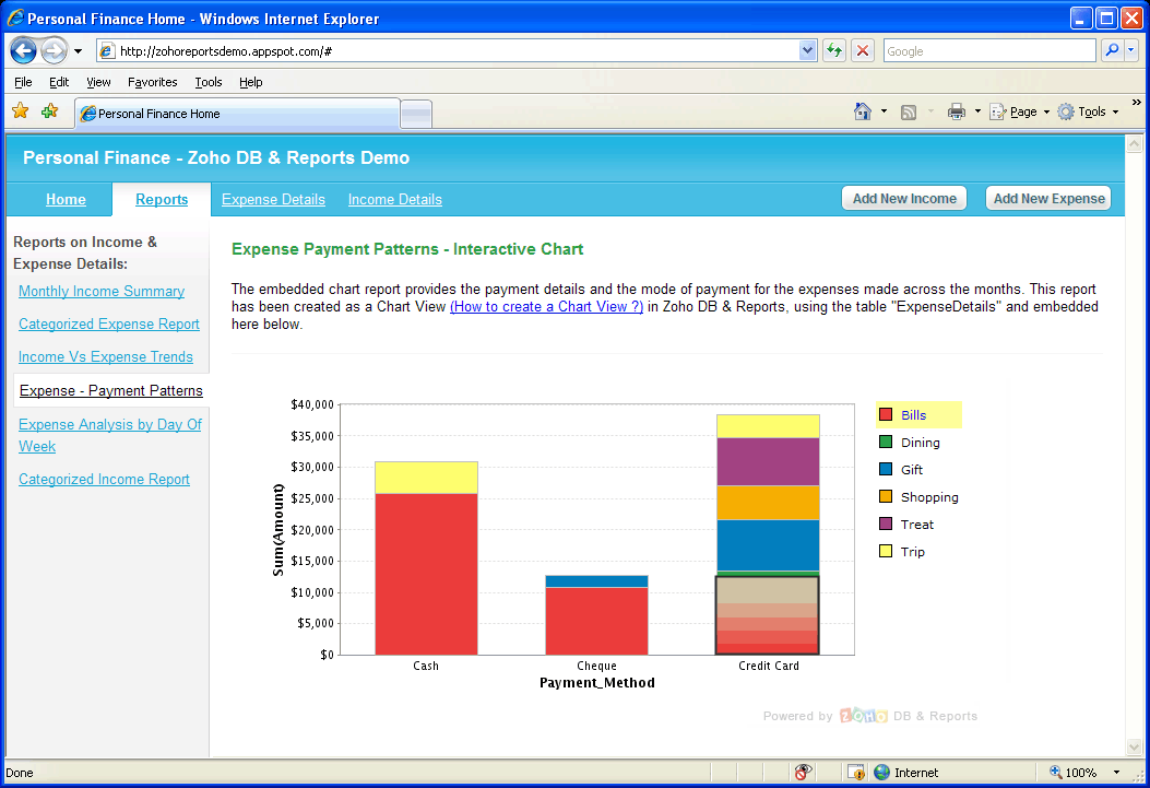Zoho Reports Personal Finance Database used to generate the above reports can be accessed here.